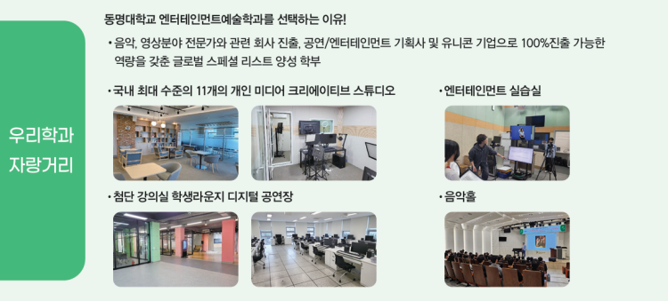 유튜브 관련 공부하는 학과를 찾으신다면 동명대학교 엔터테인먼트예술학부를 추천드립니다.