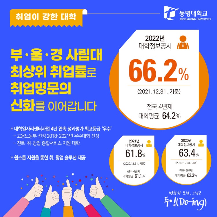 취업률 높은 학교를 찾으신다면 단연 '동명대학교'입니다.