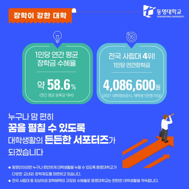 또, 장학금 혜택역시 전국 사립대 4위로 1인당 연간장학금 4,086,600원의 혜택의 수준입니다.