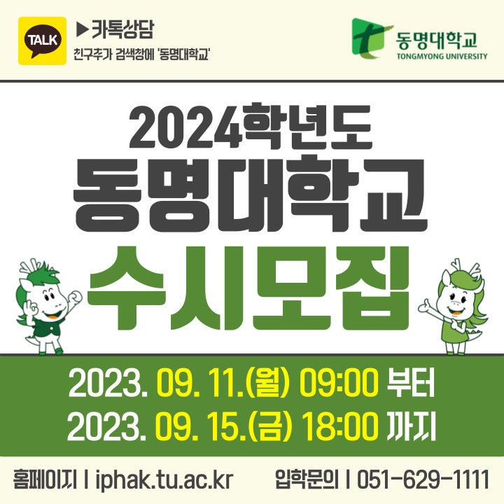 현재 2024학년도 동명대학교 수시모집 원서접수 기간입니다!