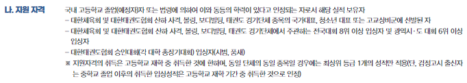 반영비율 : 학생부 교과 30% 수상실적(겨루기, 시범, 품새) 70% 반영