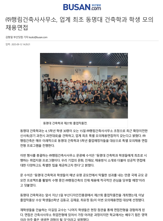 행림건축사사무소 업계 최초 동명대 건축학과 학생 모의 채용면접 진행.pdf