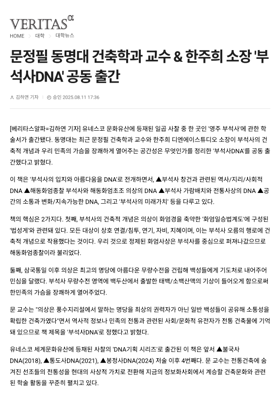 문정필 동명대 건축학과 교수 & 한주희 소장 '부석사DNA' 공동 출간