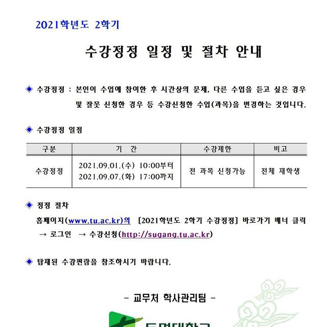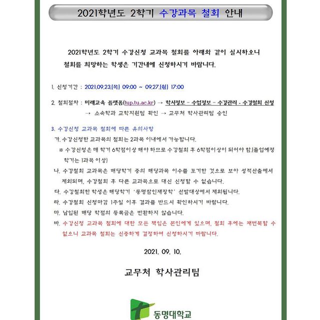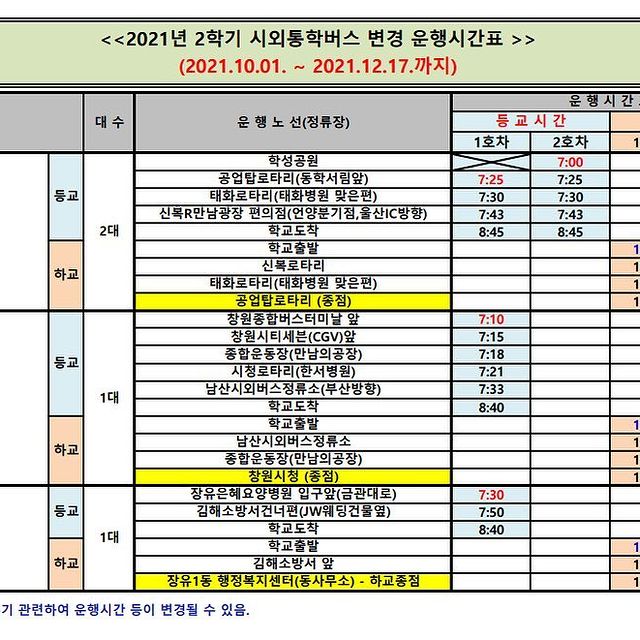 2021년도 2학기 시외통학버스 운행 일정을 아래와 같이 변경하오니 참조바랍니다.