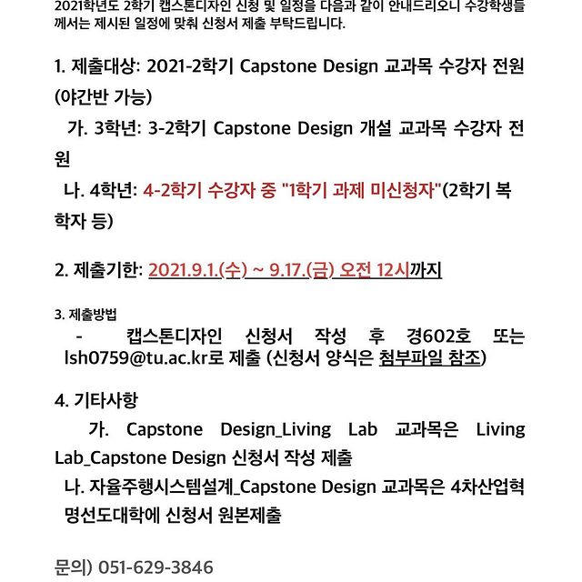 [공지] 2021-2학기 캡스톤디자인 신청서 및 일정안내