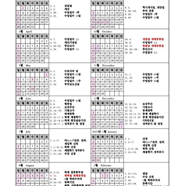 [공지] 2021학년도 학사일정 변경 안내