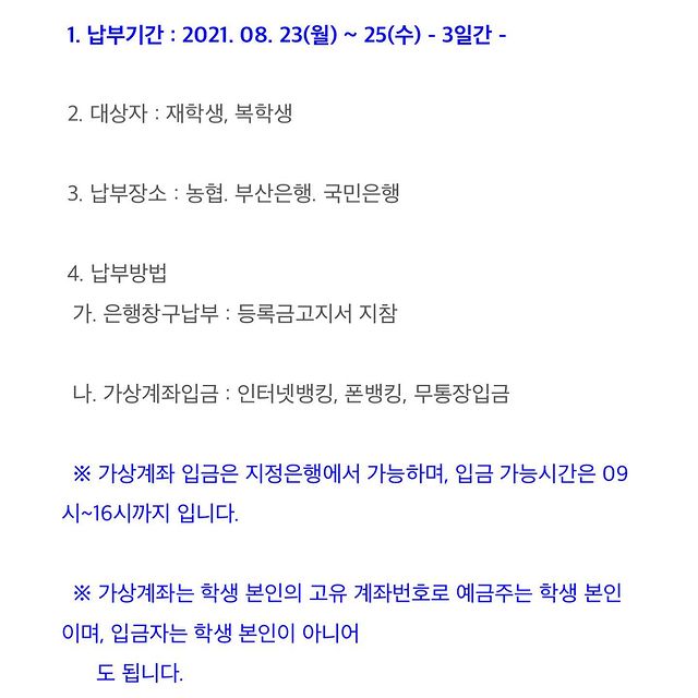 [공지] 2021학년도 2학기 재학생 등록금 납부 안내
