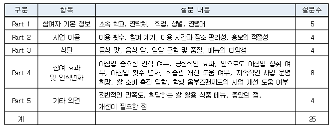 1. 조사내용 : 2025년 천원의 아침밥 사업 만족도 설문조사