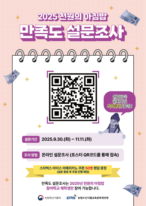 2025년도 천원의 아침밥 사업 만족도 설문조사 실시 및 참여 안내