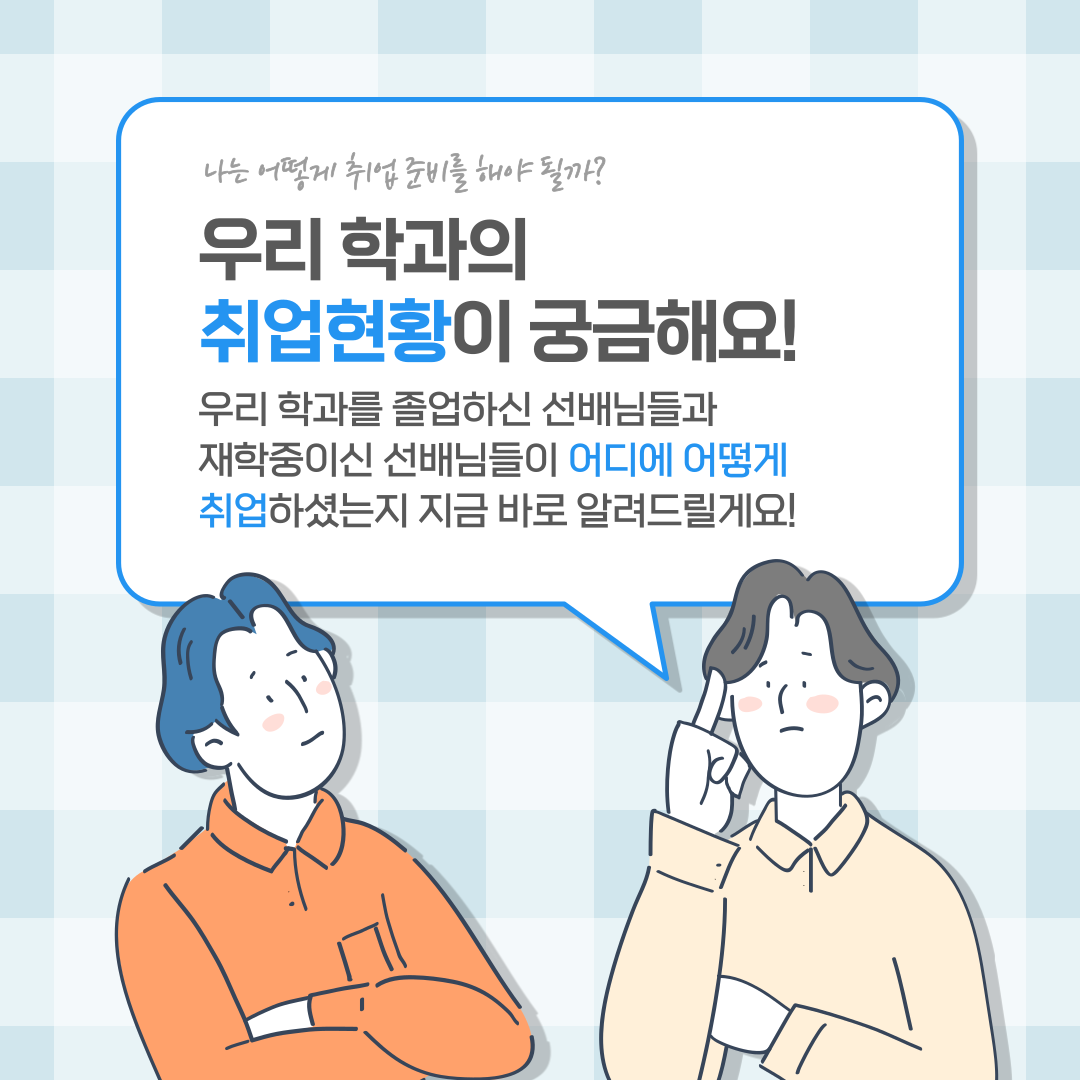학과 취업현황이 궁금한 학생 , 진로가 고민되는학생은 해당 카드뉴스 꼭 확인 바랍니다!