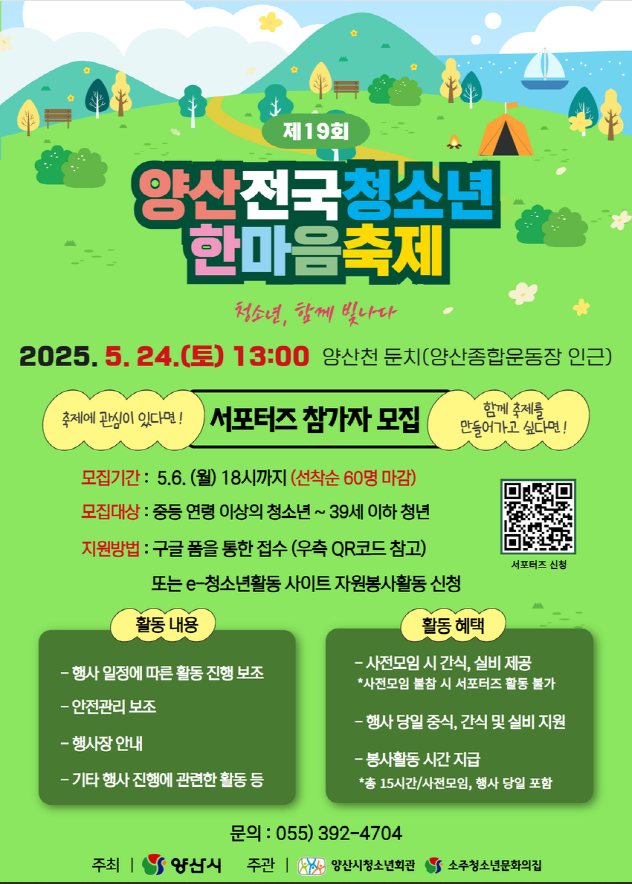 제19회 양산전국청소년 한마음 축제 서포터즈(봉사자) 모집 안내