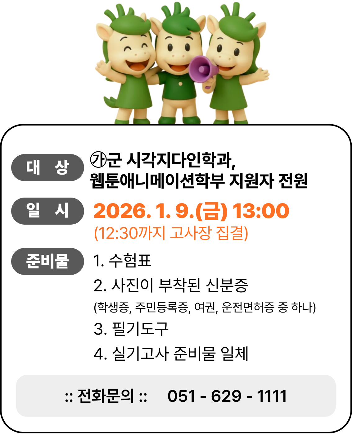 정시모집 2026-01-062026학년도 정시모집 시각디자인학과, 웹툰애니메이션학부 실기고사 안내