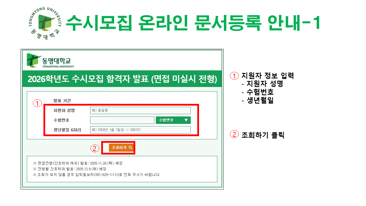 2026학년도 수시모집 합격자 안내사항