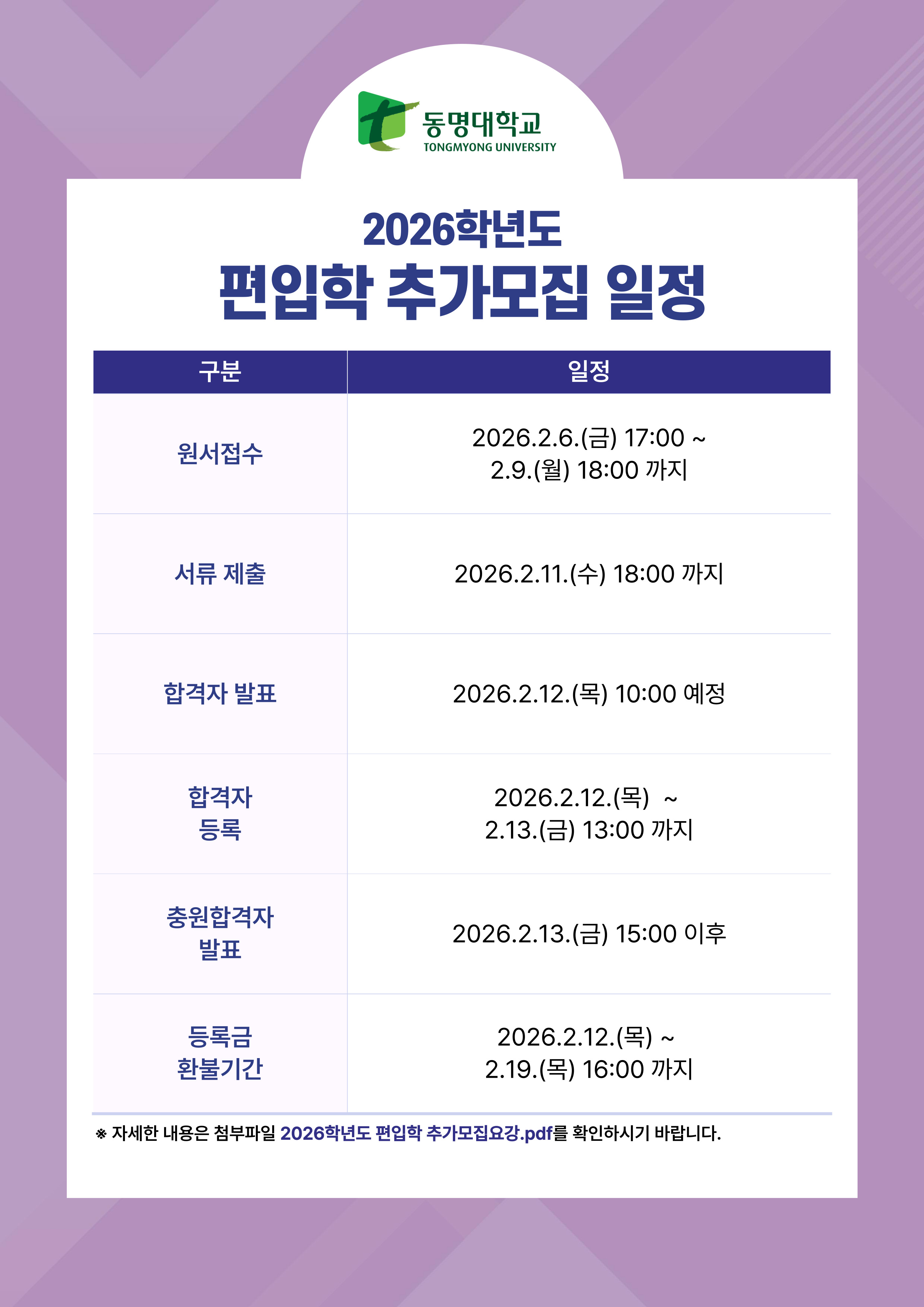 2026학년도 편입학 추가모집 일정 및 추가모집요강