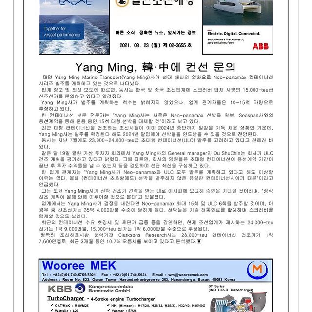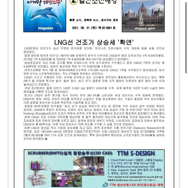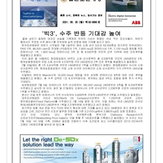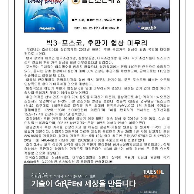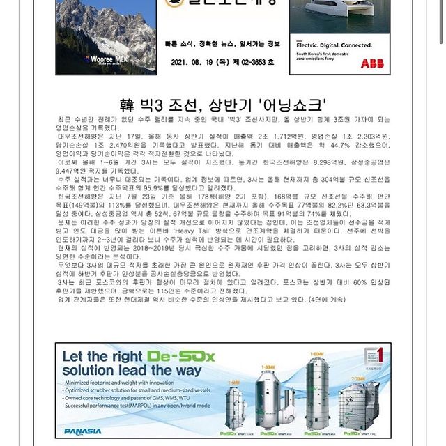 2021년 8월 23일 월요일 일간조선해양일보입니다.