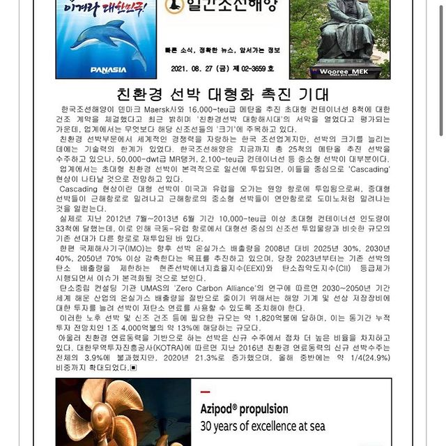 2021년 8월 27일 금요일 일간조선해양일보입니다.