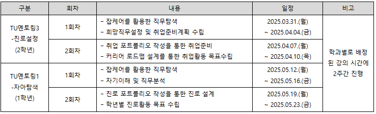[2025학년도 1학기 TU멘토링 진로빌드업 프로젝트 안내]