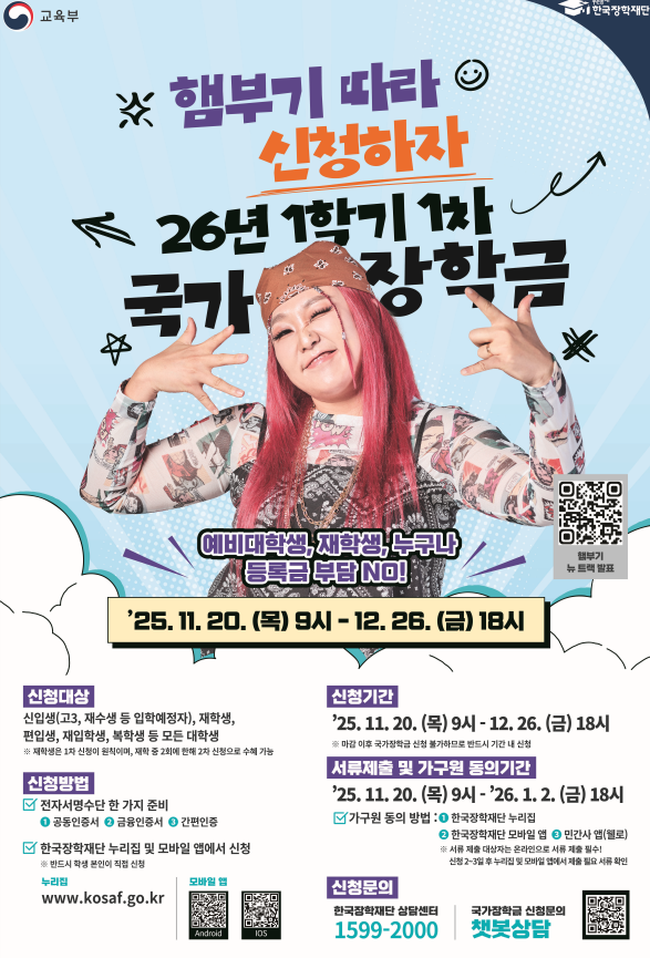 [공지] 2026-1학기 국가장학금 1차 신청 안내(11/20 - 12/26)