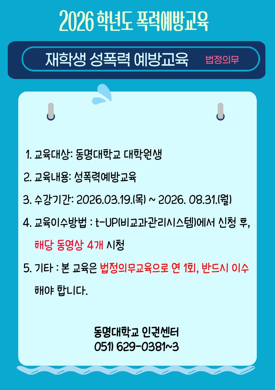 [법정의무]2026년 재학생(대학원생 포함) 폭력예방교육 이수 안내