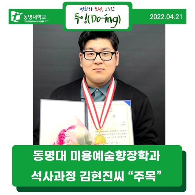 동명대학교(총장 전호환) 복지산업대학원 미용예술향장학과 석사과정 김현진 학생이 최근 2022년 부산지방기능경기대회 헤어디자인 부문에서 뛰어난