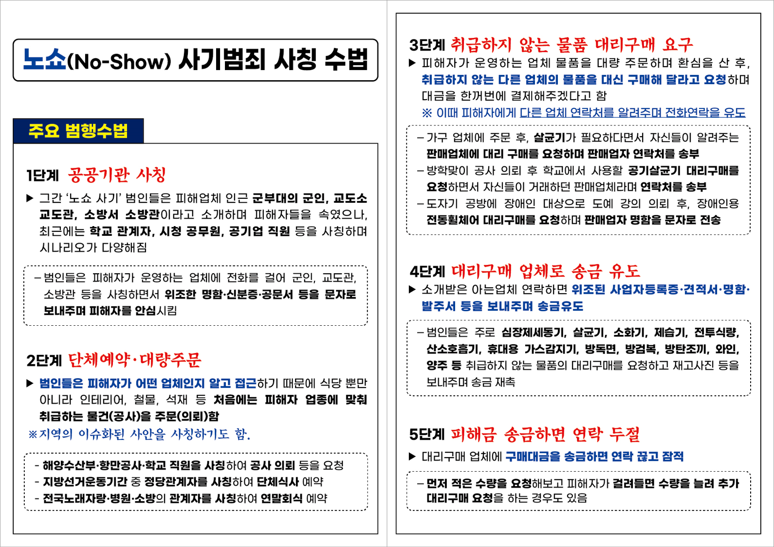 노쇼 사기 유형 안내 및 대응요령 알림