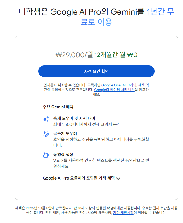 세계 대학생들에게 제공되는 Gemini 1년 무료 구독 이벤트가 진행 중입니다. (마감일이 얼마 안남았습니다.)
