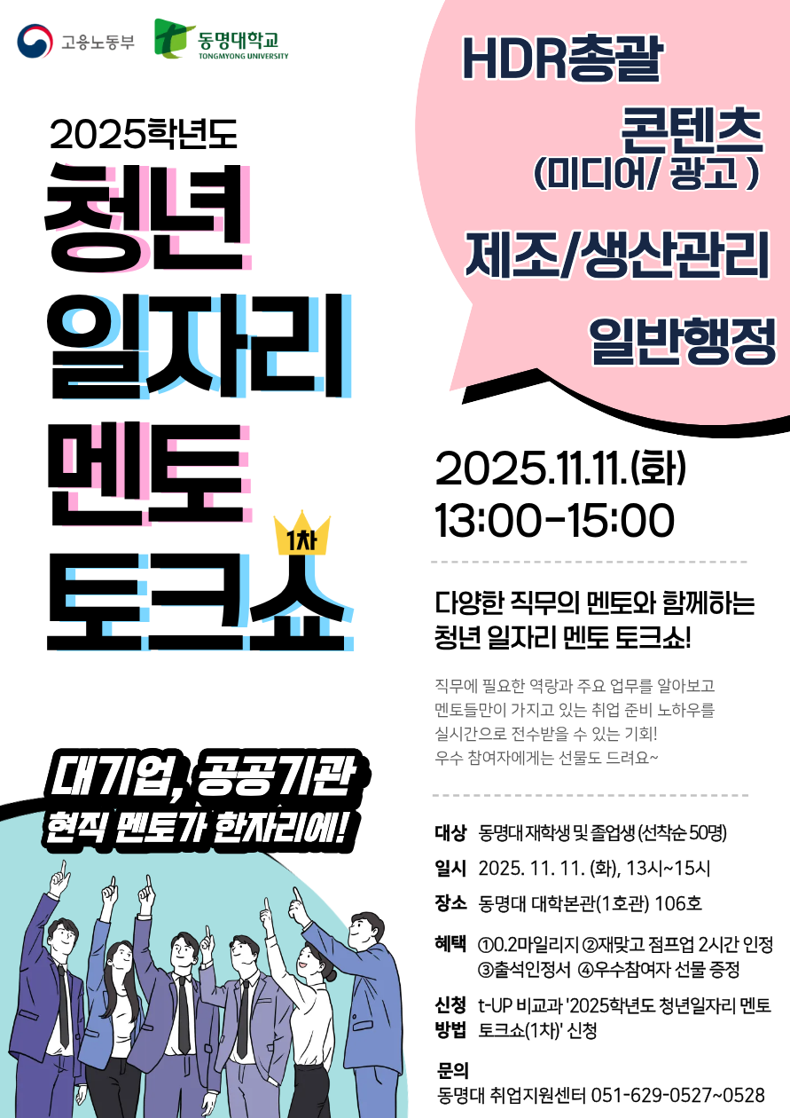 [비교과 안내/0.2마일리지] 2025학년도 청년일자리 멘토 토크쇼(1차)
