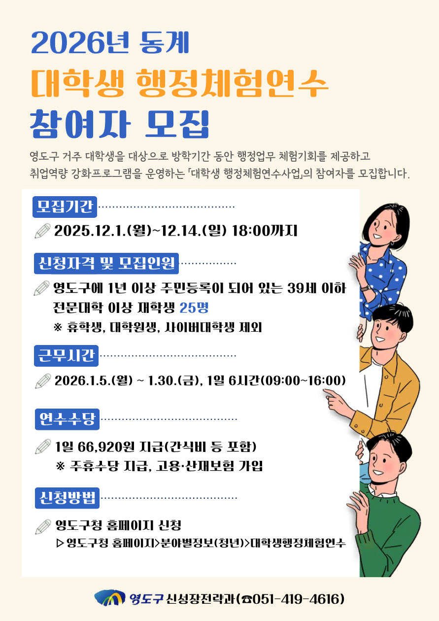 2026년 동계 대학생 행정체험 연수사업 참여자 모집