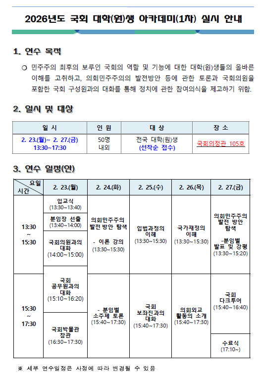 - (세부사항 안내) 국회의정연수원 홈페이지