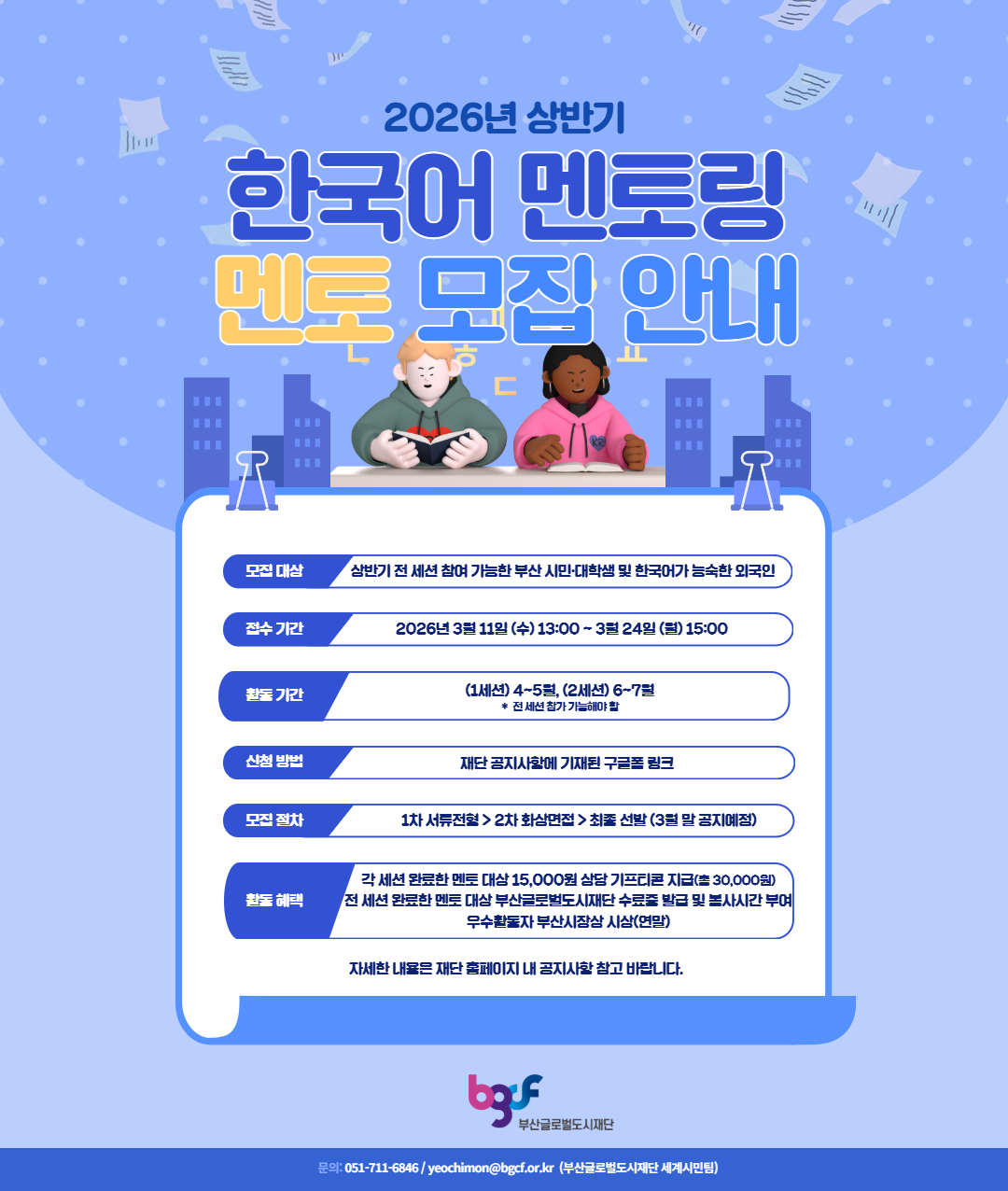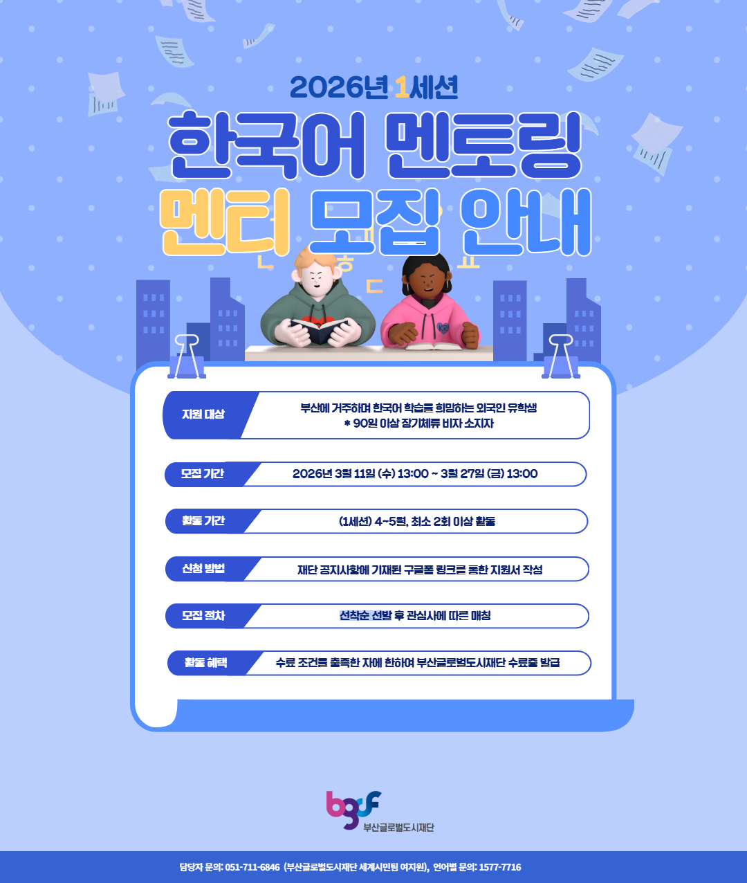 2026년 부산글로벌도시재단 멘토링 프로그램 멘토/멘티 모집