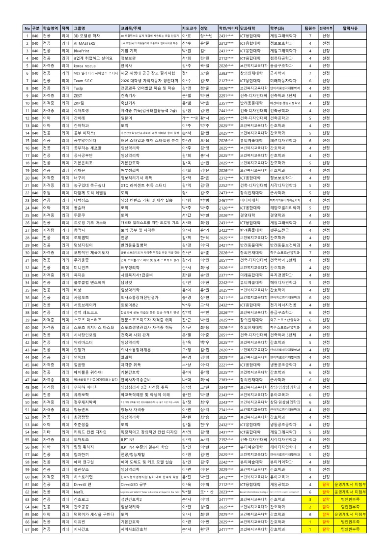 오픈채팅방 가입 링크는 <다음주 3/23(월)>에 각팀의 리더의 동명대 알림톡(카카오톡)으로 안내드릴 예정입니다.
