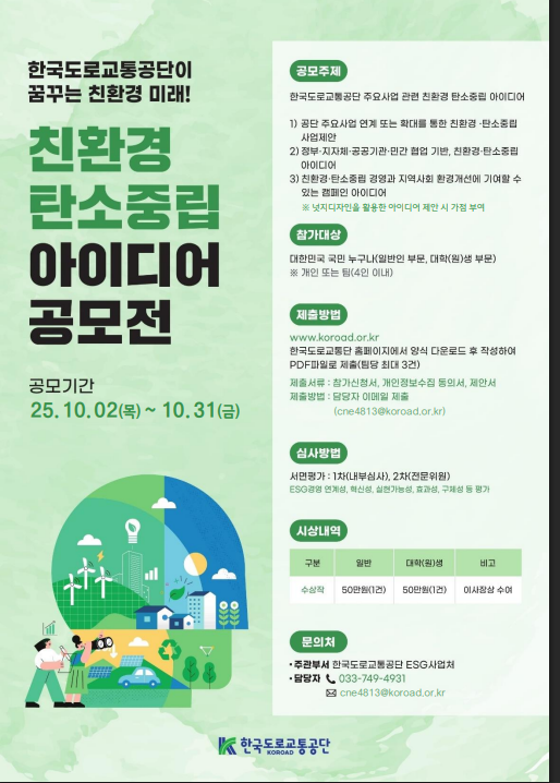 한국도로교통공단 대국민 친환경 탄소중립 아이디어 공모전 안내