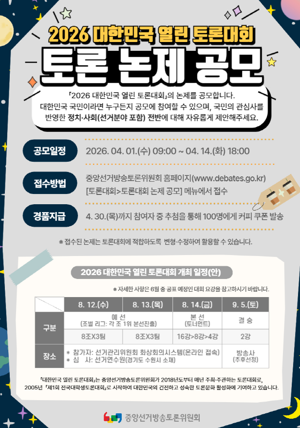 '2026 대한민국 열린 토론대회' 논제 공모