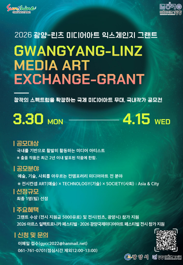○ 공 모 명 :「2026 광양-린츠 미디어아트 익스체인지 그랜트」국내작가 공모전