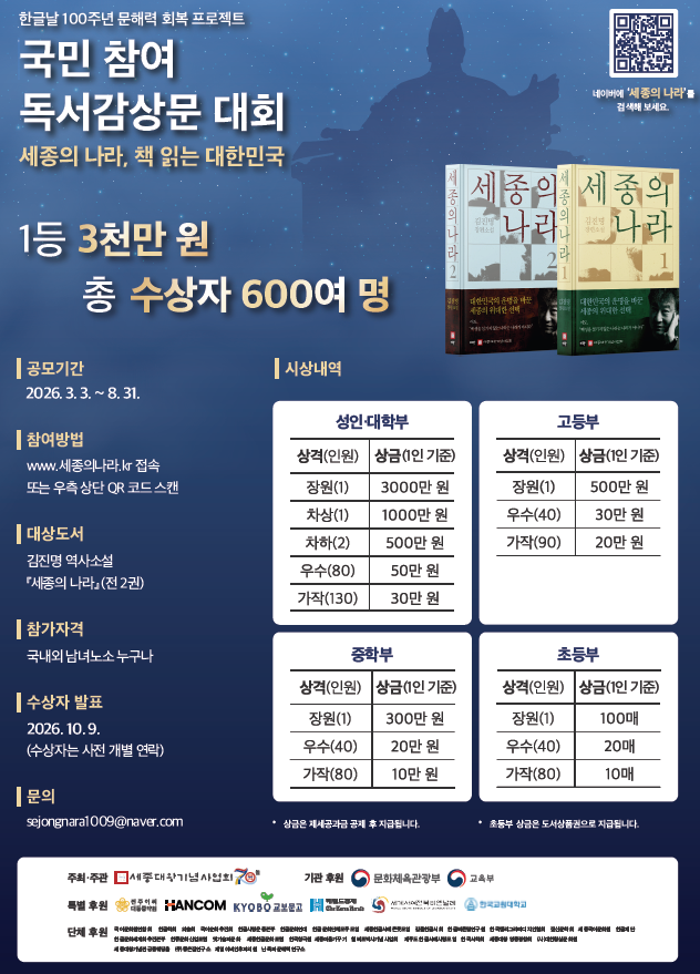 교육부 후원 [세종의 나라, 책 읽는 대한민국] 전국 독서감상문 대회