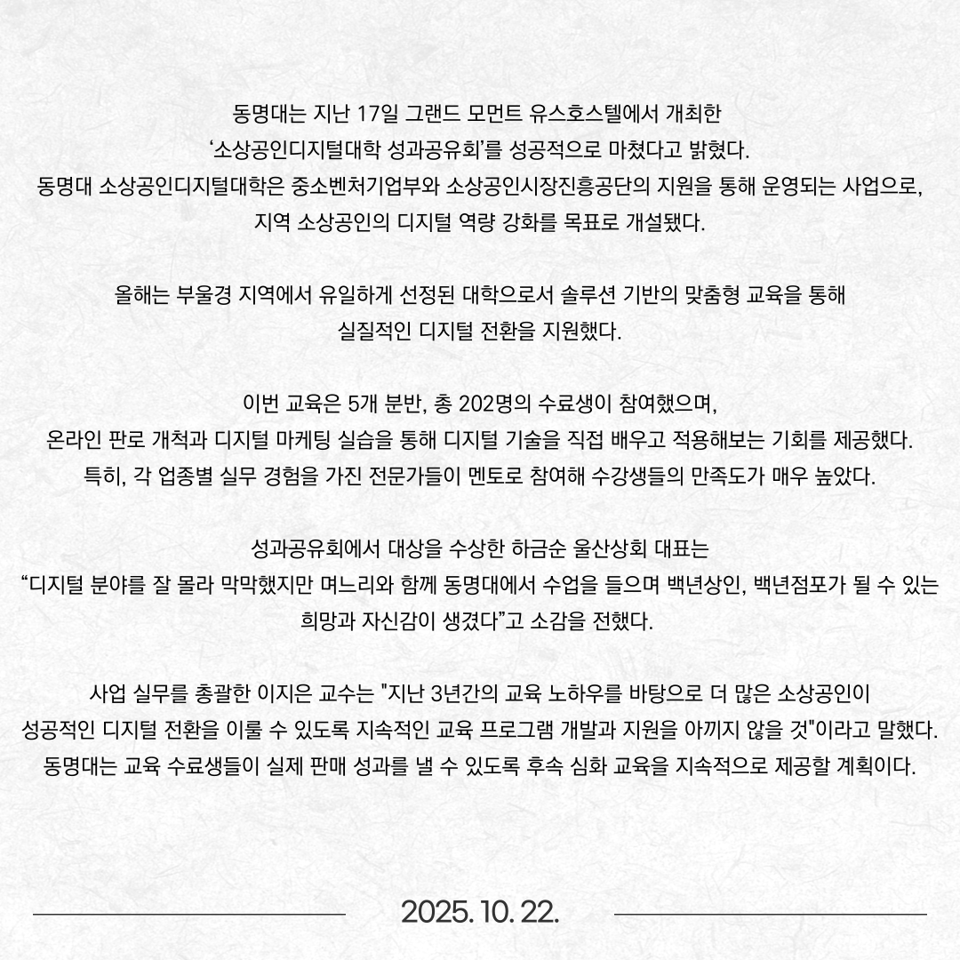 동명대,‘소상공인 디지털 특성화 대학’성료