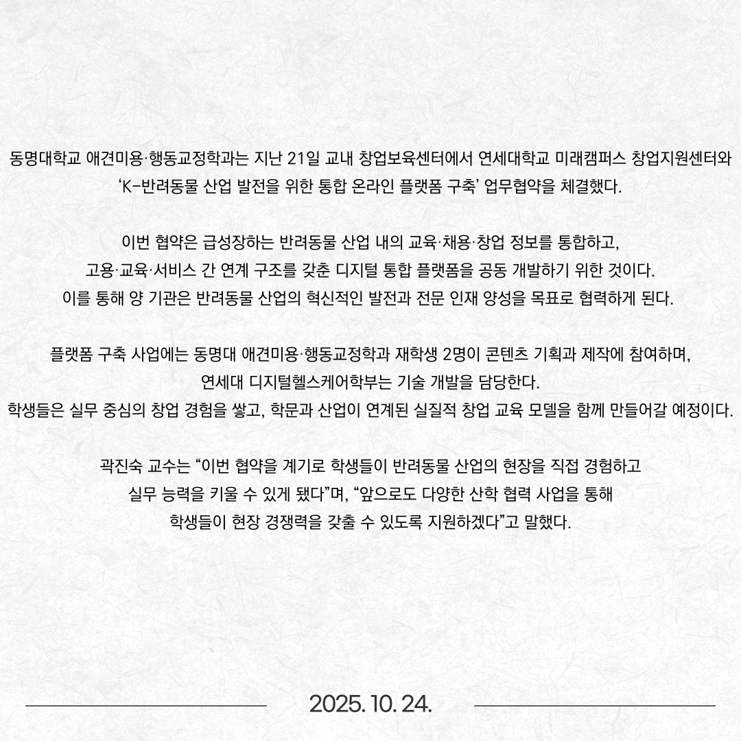 연세대와‘K-반려동물 산업을 위한 통합 플랫폼 구축’업무협약 체결