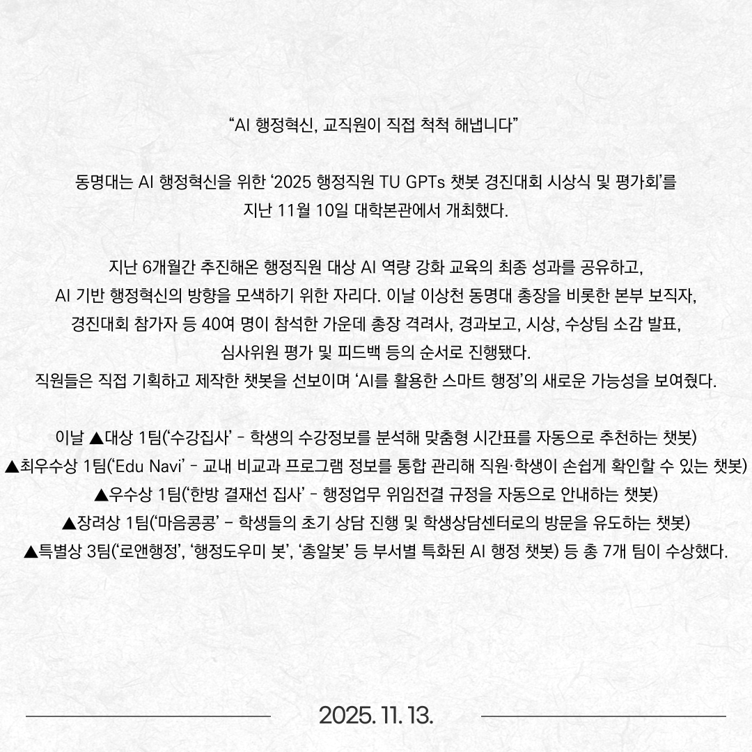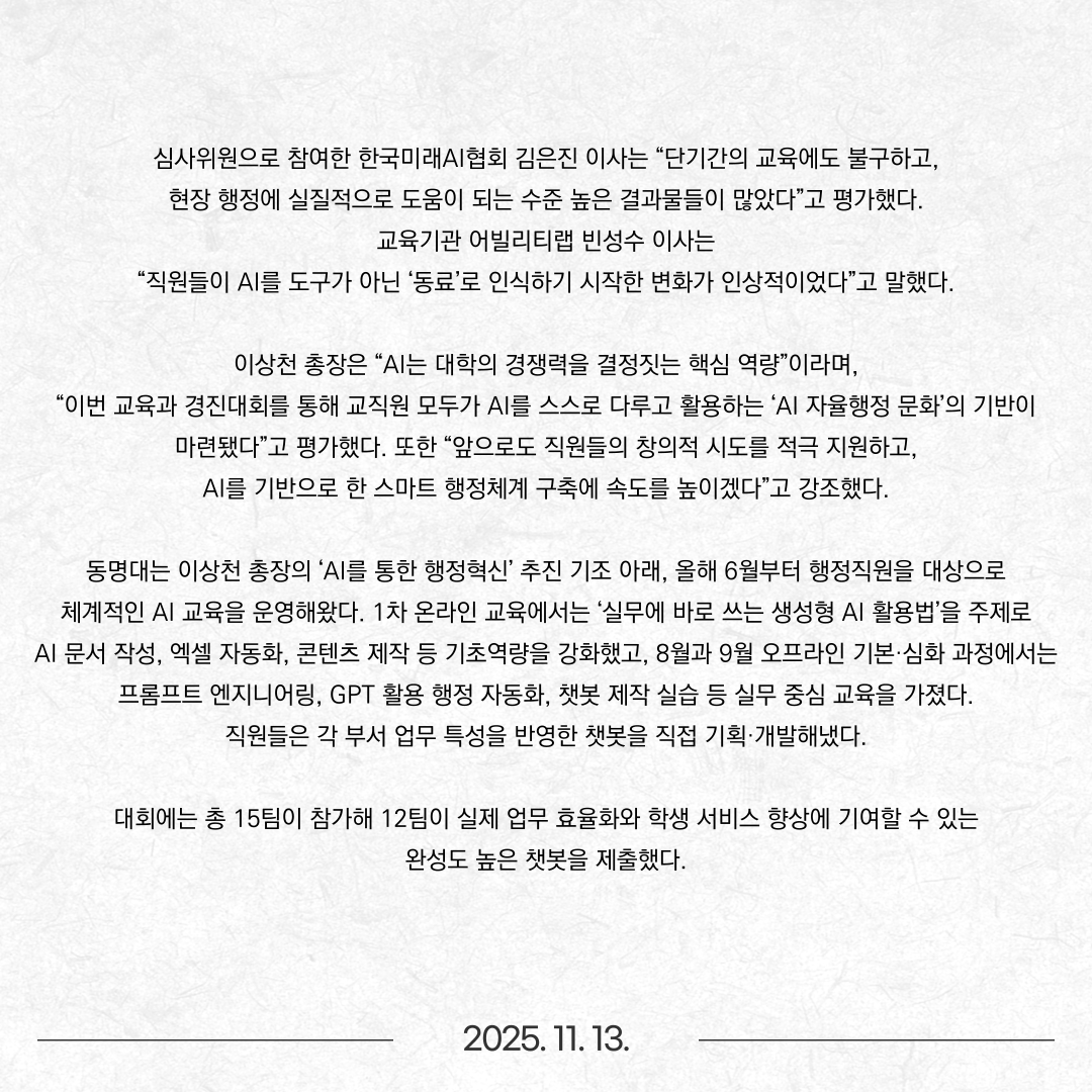 “AI 행정혁신” 동명대 실무중심 챗봇경진대회 성료