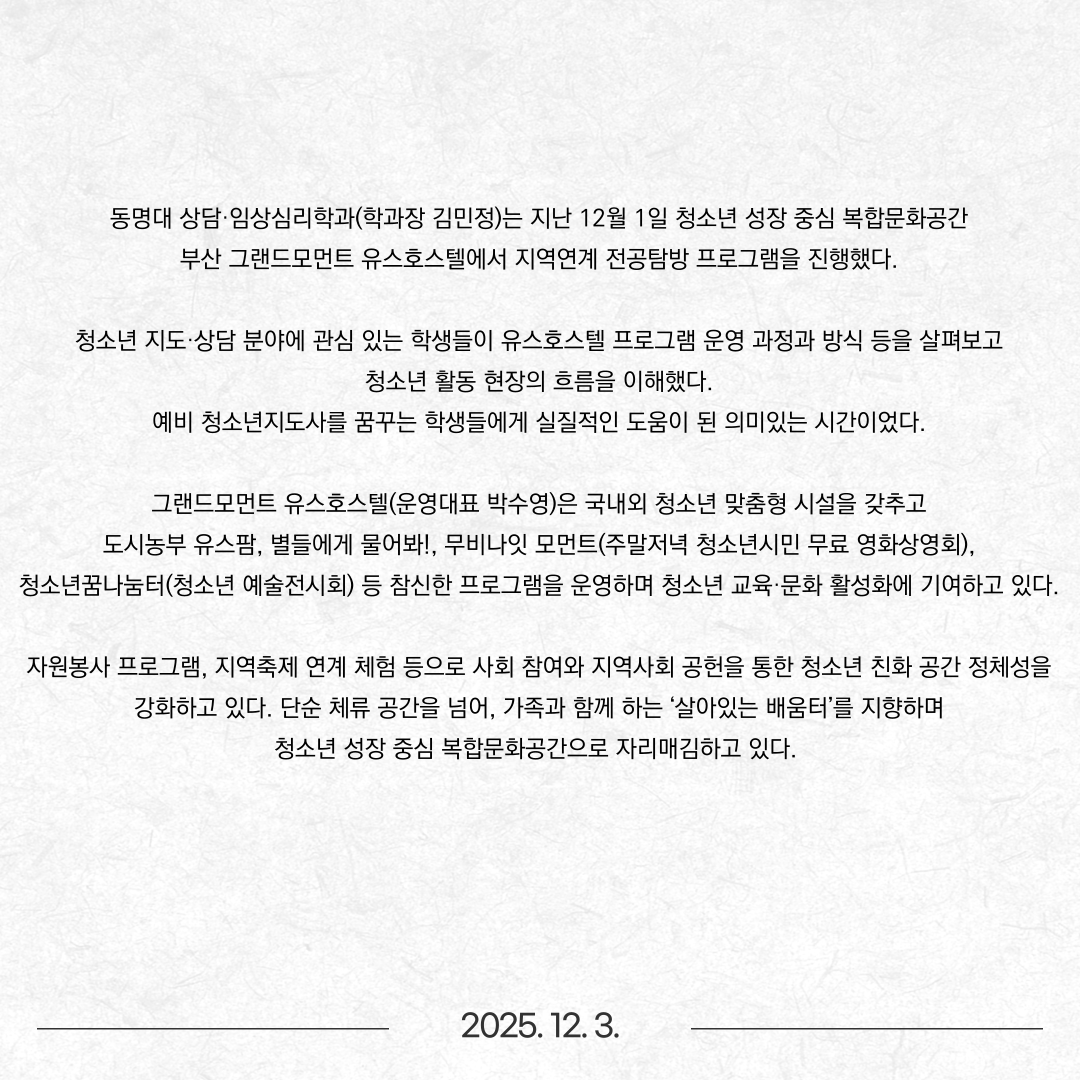 동명대 상담·임상심리학과, 그랜드모먼트 찾아 지역 연계 전공 탐방