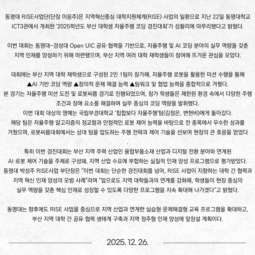2025학년도 부산 대학생 자율주행 코딩 경진대회 개최