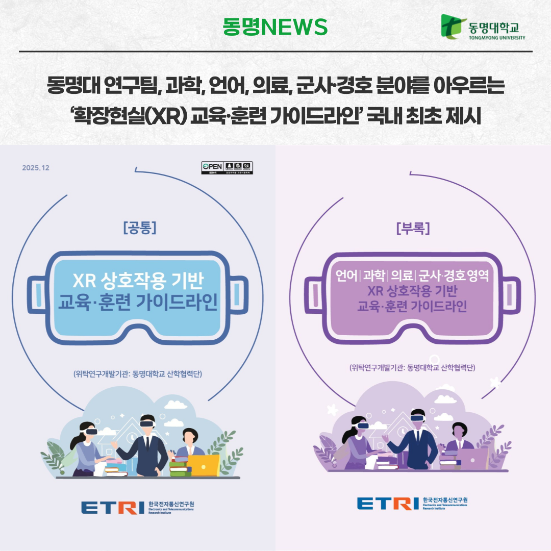 동명대 연구팀, ‘확장현실(XR) 교육·훈련 가이드라인’ 국내 최초 제시
