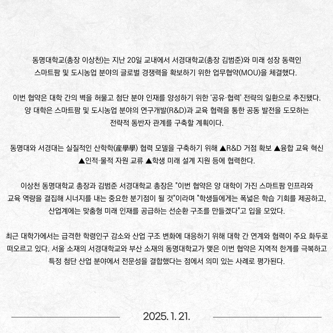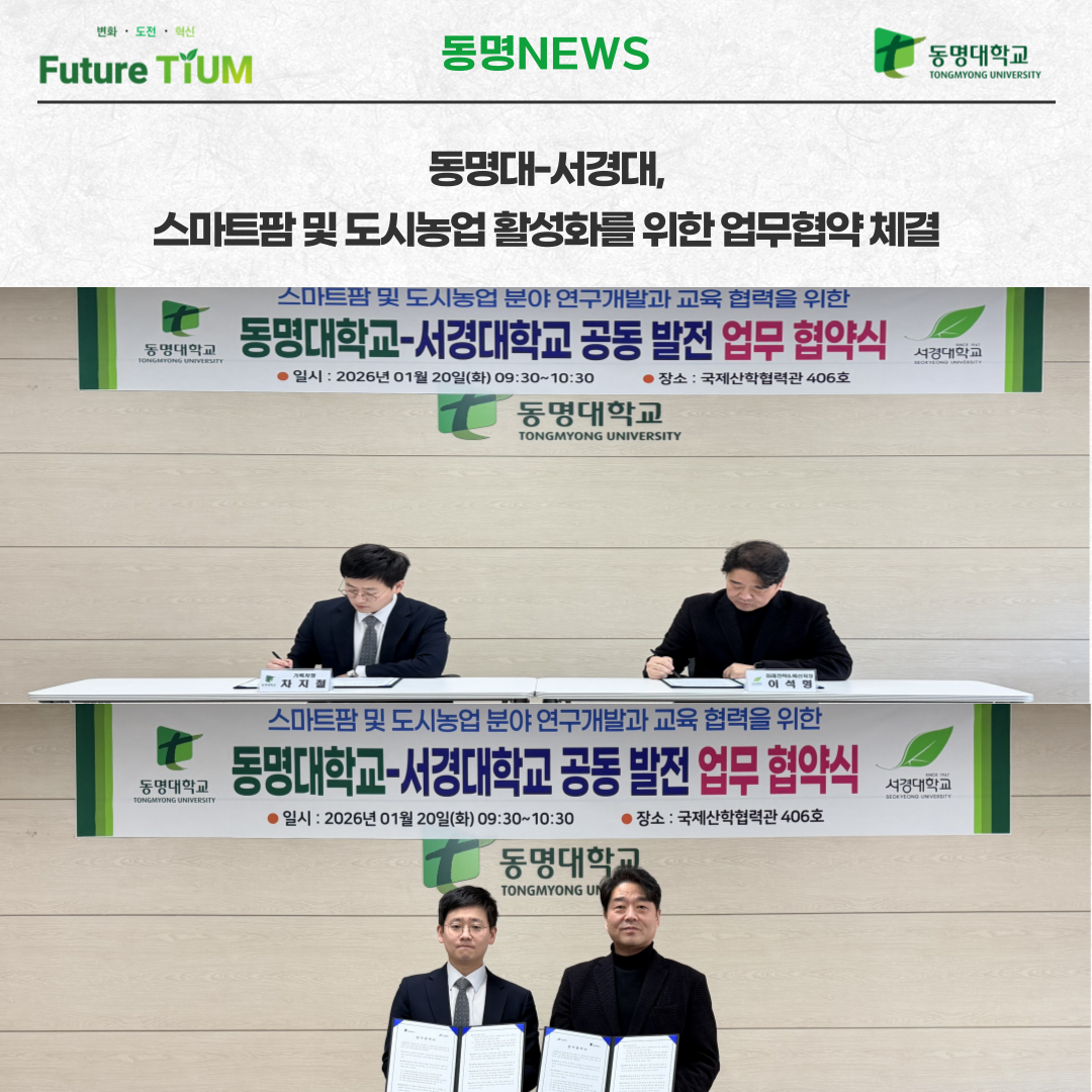 동명대-서경대, 스마트팜 및 도시농업 활성화를 위한 업무협약 체결