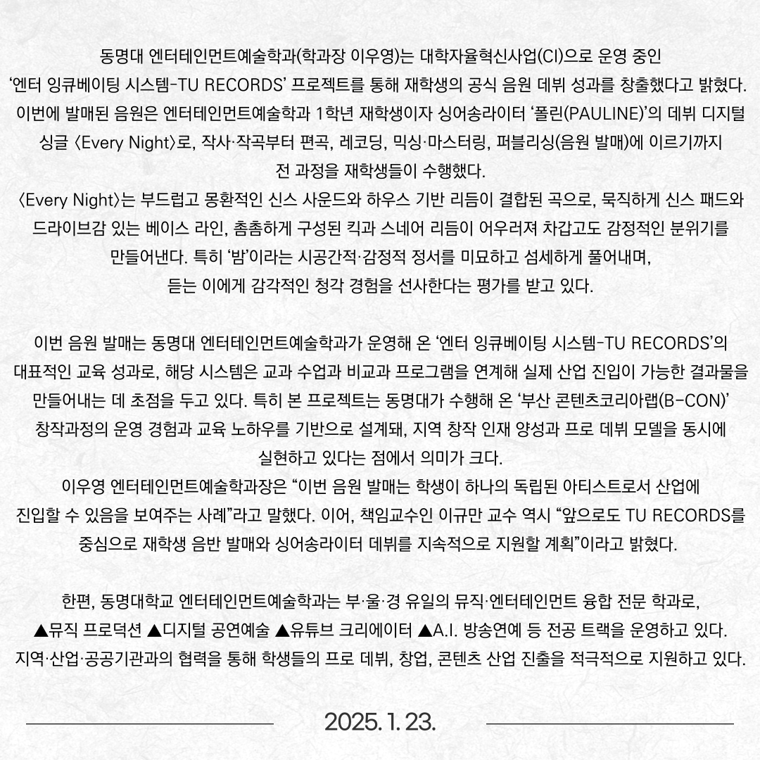 동명대 엔터테인먼트예술학과, 재학생 싱어송라이터 데뷔 음원 제작
