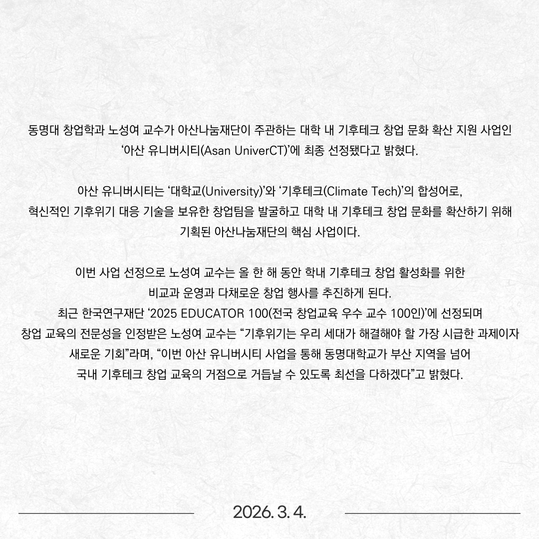 노성여 교수, 아산나눔재단 ‘아산 유니버시티’ 사업 선정