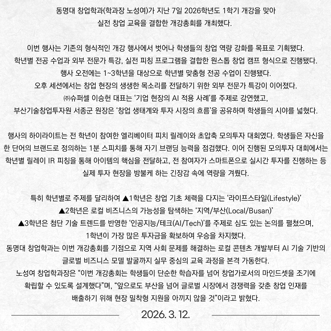 동명대 창업학과, ‘혁신형 개강총회’ 개최