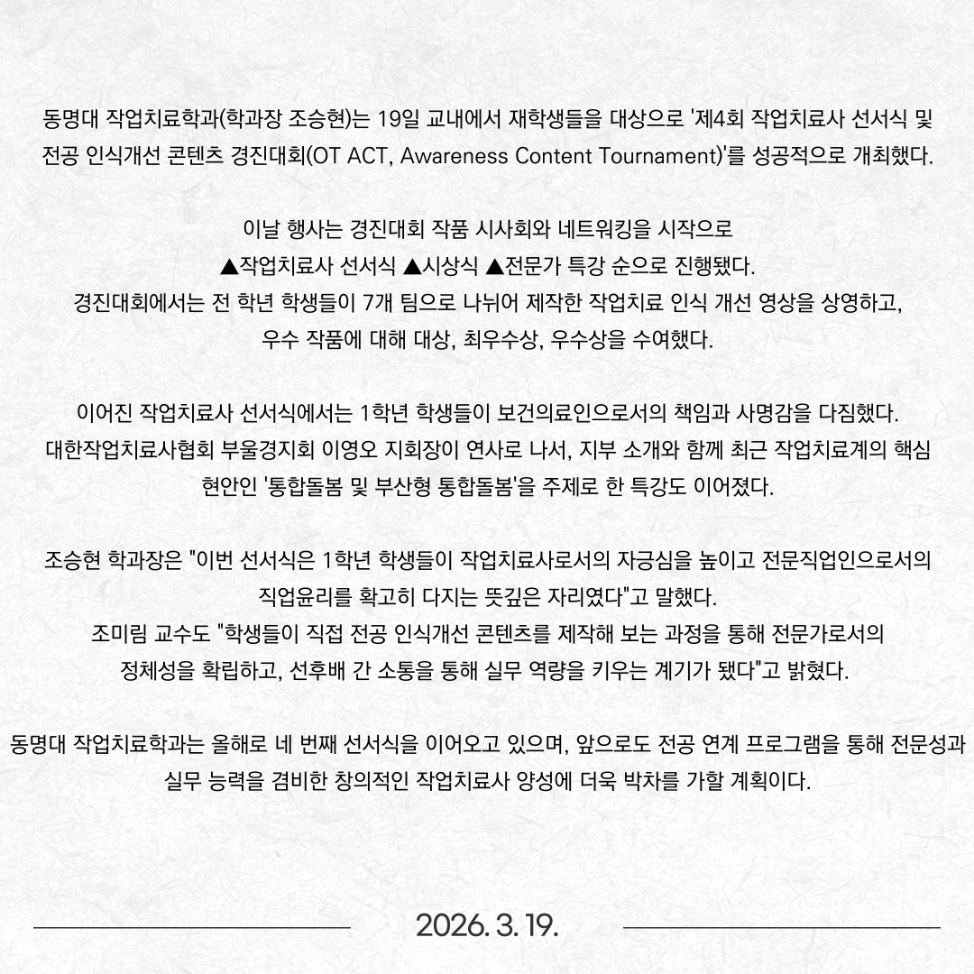 동명대 작업치료학과, 선서식·콘텐츠 경진대회 개최