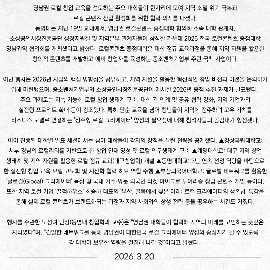 영남권 로컬콘텐츠 중점대학 협의회, 2026년 사업 비전 공유
