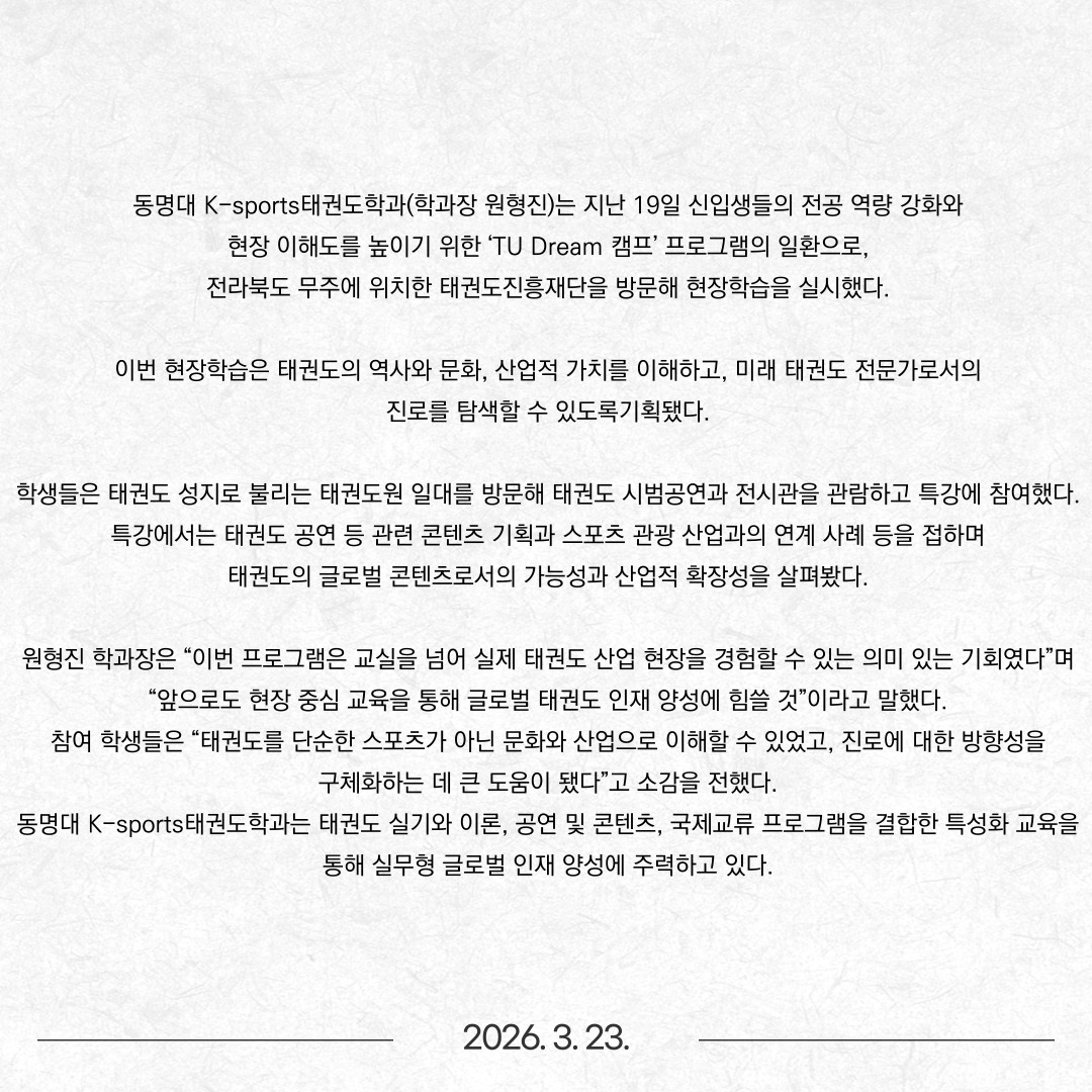 동명대 K-sports태권도학과, 태권도진흥재단 현장학습 실시
