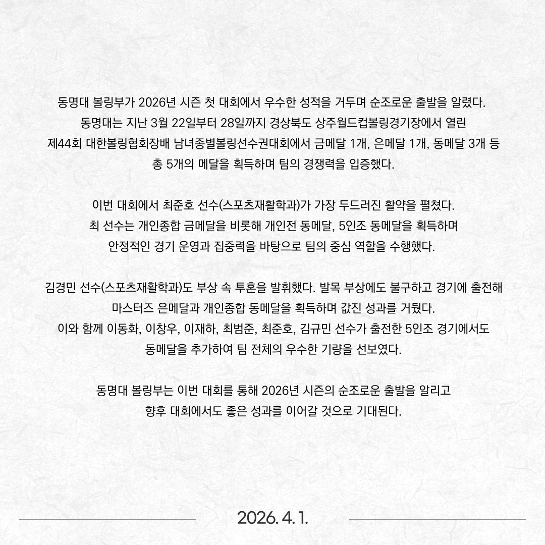 동명대 볼링부, 대한볼링협회장배서 금1·은1·동3